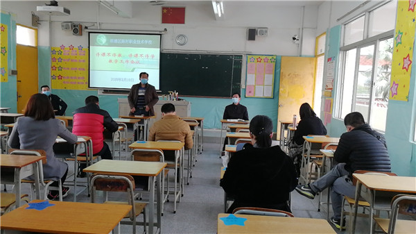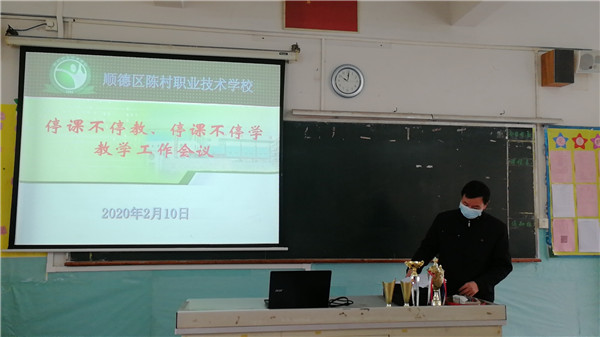 2020年2月10日上午10點,陳村職業技術學校教務處召開了“停課不停教、停課不停學”教學工作會議,學校各專業部長、學科組長等教學線管理人員參會。