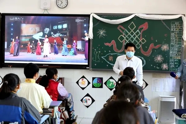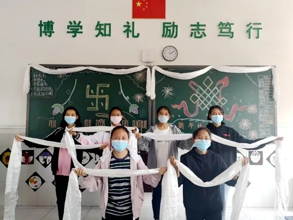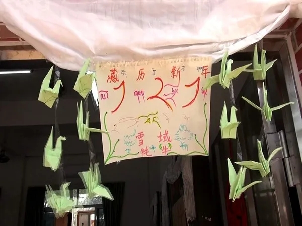 學(xué)生們一早起床后穿好了漂亮的藏服,忙碌著布置起教室、宿舍,門口掛上新的哈達(dá),黑板上寫滿了新年的祝福,跟遠(yuǎn)在西藏的家長視頻拜年,祝愿家人身體健康,祖國繁榮富強(qiáng),班級的迎新活動中,載歌載舞,用歌聲迎接藏歷鐵鼠新年的到來。