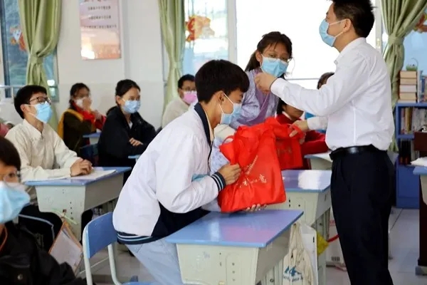 隨后,順德區(qū)區(qū)長彭聰恩來到校園,慰問了西藏班的學(xué)生,給每一位西藏班的同學(xué)帶來了新年的禮物,有課外閱讀書籍、文具和食品;并跟同學(xué)進(jìn)行親切的交談。