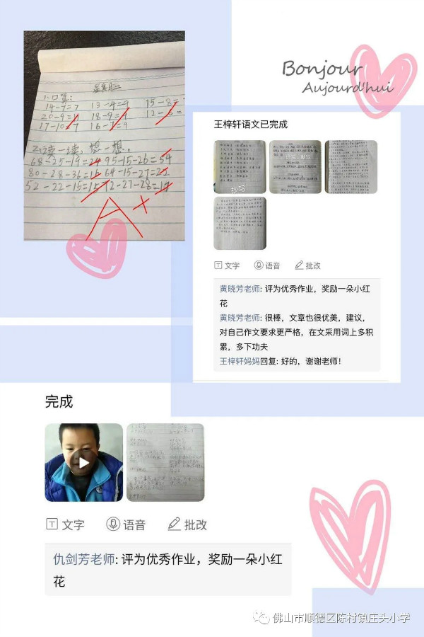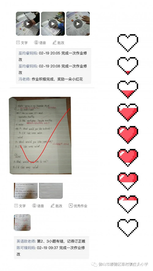 在大家的共同努力下,2月17日,莊頭小學線上學習正式開啟啦!所有學生根據課表安排,在家利用網絡堅持學習和運動。每日的學習之后,老師們利用微信群、“班小二”等工具發布學習計劃和資源,指導學生按時完成學習任務,同時對學生的作業進行及時批改和答疑,指導學生的學習。家長和學生還通過微信“班小二”和“問卷星”及時反饋線上學習情況,讓老師們對學生在家的學習情況有一個大致的了解,及時調整教學內容和學習方法。現在,即使不能如期開學,孩子們的學習積極性依然很高。