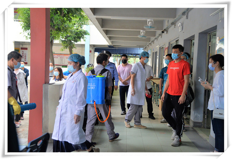 隨后,級長疏散剩余學生進入臨時等候區靜待,應急人員拉好警戒線,安保人員封閉現場,后勤人員對周邊環境進行全面消毒。暫停解除后,進校工作繼續進行。