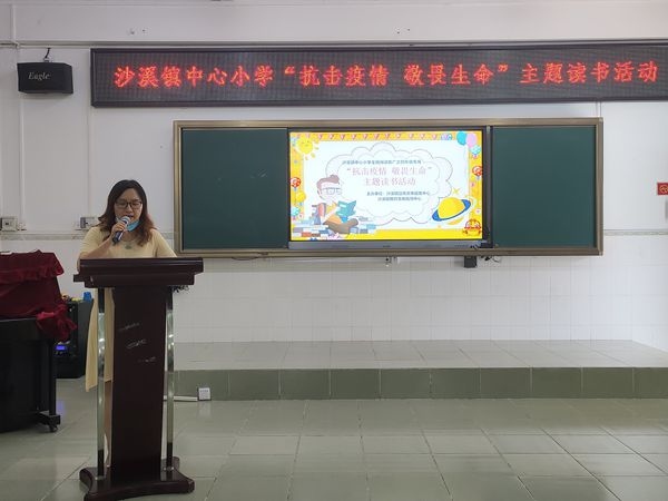 9月9日下午,沙溪鎮中心小學四年級全體師生在學校電教室開展了“ 抗擊疫情,敬畏生命 ”主題讀書活動。本次活動有幸請到家長和學生一起分享親子共讀心得。劉美霞副校長參加了此次活動,劉綺云老師主持活動。