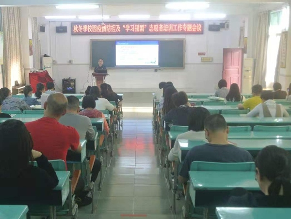 為了這次演練能高效完成,16日下午,黃賢軍校長主持召開了秋冬季校園疫情防控會議,全體教師參加。會上,黃校長介紹了秋冬季傳染病的傳播途徑、科學防控的基本原理、具體措施、科學的應急預案,強調了防控關鍵要教室通風,保持距離,勤洗手。他還詳細部署了學校防控疫情演練工作。此次演練分為五個部分:上學、平時上課、食堂用餐、班級有學生嘔吐后的處理、放學后課室消毒,主要由六年級師生承擔,黃校長總指揮,健康副校長徐大寬全程指導,黃潤瓊主任發出指令和廣播,值日教師配合,其他師生觀摩。會后,全體教師認真學習演練方案,為日常防控疫情做好充分準備。