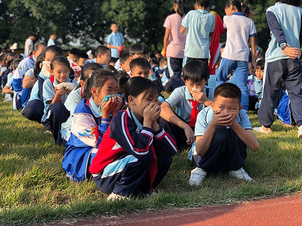 演練開始前,各班主任再一次強調演練重點,全校師生從接到指令,到撤離到指定安全地帶,只用了不到2分鐘。警報響起后,同學們快速地離開課室,以手帕、毛巾或者衣物遮掩口鼻,俯身前進,途中高年級注意避讓、照顧低年級的同學。整個過程緊張有序、沒有出現擁擠摔倒現象,同學們能按照要求認真對待,安全防范意識強烈。老師組織到位,保障有力,保證了這次演練的成功。