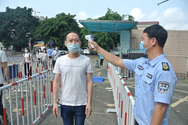 在培訓(xùn)會(huì)上,黃賢軍校長(zhǎng)首先對(duì)全校教職工進(jìn)行了防控新冠肺炎知識(shí)培訓(xùn)。并對(duì)學(xué)校制定的《防控新冠肺炎返校演練活動(dòng)方案》進(jìn)行了詳細(xì)解讀,讓每一位教師都明確了演練目的、要求、分工及熟悉具體流程。緊接著全體教職工按照各自的角色分工進(jìn)行了模擬演練。演練有四項(xiàng)內(nèi)容:一是上學(xué),要求師生入校消毒、測(cè)溫,當(dāng)發(fā)現(xiàn)有學(xué)生體溫異常該如何處理;二是上課及午檢,要求老師要注意講臺(tái)、課桌距離,課室通風(fēng),師生防護(hù)及午檢測(cè)溫,下課洗手消毒;三是放學(xué)課室消毒,要對(duì)地面、課桌椅、門把手、講臺(tái)進(jìn)行消毒,通風(fēng)換氣;四是食堂用餐,教師組織學(xué)生排隊(duì)、洗手、拿餐、用餐,教師全方位的管理。演練過程中,黃賢軍校長(zhǎng)擔(dān)任了演練總指揮掌控全局,使整個(gè)返校演練有條不紊地進(jìn)行著。黃潤(rùn)瓊副主任進(jìn)行了旁白,引導(dǎo)各角色進(jìn)入場(chǎng)景,讓演練的每一個(gè)環(huán)節(jié),環(huán)環(huán)相扣,層層推進(jìn)。參加演練的人員根據(jù)預(yù)案逐一進(jìn)行了演練,演練了上學(xué)時(shí)學(xué)生進(jìn)校門以及發(fā)現(xiàn)發(fā)熱學(xué)生的模擬場(chǎng)景;演練了在課室里老師如何開展上課及午檢工作的場(chǎng)景;還模擬了放學(xué)了如何對(duì)課室進(jìn)行消毒和在食堂用餐的場(chǎng)景模擬。整個(gè)演練過程緊張有序,全體教職工認(rèn)真投入,達(dá)到了演練的預(yù)期目的。據(jù)悉,本次返校演練活動(dòng)學(xué)校高度重視,對(duì)方案經(jīng)過了多次打磨,注意緊密貼合學(xué)校實(shí)際,各項(xiàng)環(huán)節(jié)安排周密,細(xì)節(jié)考慮周全。