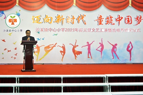 為了迎接2020年的到來,為了豐富學生的校園生活,展現同學們的才華和藝術社團精神風貌,培養學生健康的審美情趣和良好的藝術修養,推動學校藝術教育的發展,2019年12月31日下午,沙溪鎮中心小學在禮堂隆重舉行了“邁向新時代,童筑中國夢”2019迎元旦文藝匯演暨合唱節頒獎活動,給同學們一個真正展示自我風采的舞臺。讓每個學生在精彩的活動中快快樂樂迎接新年,感受濃濃的校園藝術文化氛圍,健健康康地成長。全校師生和鎮教育事務指導中心劉綺嫻副主任、德育專干阮秀迎老師以及校外輔導員高永樂先生、部分校家委會成員參加了活動。
