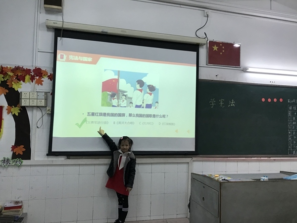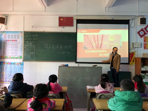 據悉,此次活動的開展是為深入貫徹落實黨的十九大提出的依法治國的基本方略,大力弘揚憲法精神,積極營造學法、知法、守法、尊法、信法、用法的良好氛圍。在11月份,沙溪鎮中心小學就拉開了“憲法在我心中”宣傳教育活動的的序幕,各班積極響應,首先組織了全校同學完成了教育部全國青少年普法網憲法平臺的 “憲法小衛士”的測試。其次學校利用升旗儀式的國旗下講話,向全校師生發出了學習憲法、尊敬憲法的倡議。并充分利用德育課堂這個主陣地,各班舉行了“守法自護 杜絕欺凌”的主題班會,各班主任利用生動的課件以及生動的案例告誡學生憲法就在身邊,要做到知法守法,遠離犯罪,并通過交流、辯論等豐富多彩的形式去引導學生提高了法律意識,弘揚法治精神,堅定不移做遵紀守法的好公民。