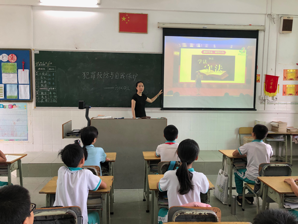 6月27日下午,根據中山市教育和體育局的統一安排,沙溪鎮中心小學六年級學生收看了以“犯罪預防與自我保護”為主題活動的直播視頻。首先,朱檢察官向我們介紹活動的兩大內容:檢察官職責和涉未犯罪排行榜。接著朱檢察官通過視頻直播審判現場來讓學生直觀認識檢察官日常的工作和明白履行的工作使命;再者,朱檢察官結合青少年的生活實際和心理特點用各種有趣的形式向孩子們講授知法、學法和守法的重要性。通過解釋“PUA”的意思,出示“未成年人最常觸犯或者最常被侵害的五類犯罪”和“檢察官提醒”三個部分詳細具體地講解“涉未犯罪排行榜”的相關內容;最后,朱檢察官寄語孩子們要遵紀守法,規范自己的行為,懂得保護自己來結束本次活動。