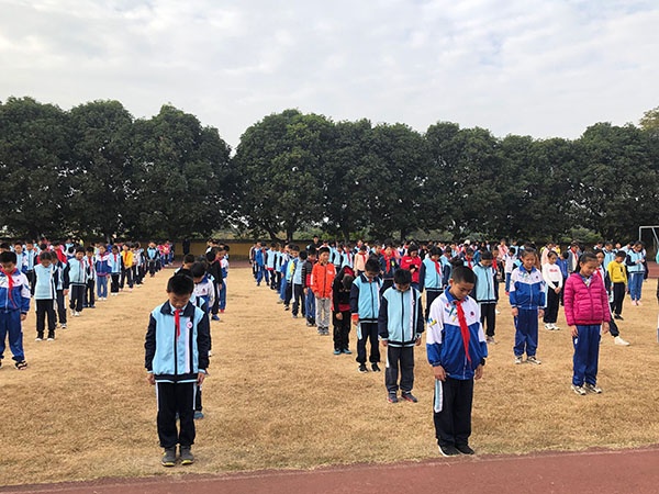 12月13日上午,在隨風飄揚的五星紅旗下,沙溪鎮濠涌小學全體師生舉行了莊嚴肅穆的國家公祭日活動。