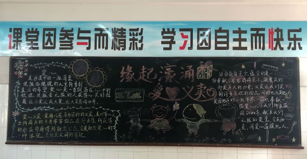 通過(guò)這次“愛(ài)心義賣”黑板報(bào)評(píng)比活動(dòng),進(jìn)一步地宣揚(yáng)了愛(ài)心義賣活動(dòng)的積極意義,讓同學(xué)們明白了“贈(zèng)人玫瑰,手有余香”的深刻道理,也營(yíng)造了良好的校園氣氛,豐富了師生的文化內(nèi)涵,加強(qiáng)了校園的文化建設(shè),形成了一道亮麗的風(fēng)景線。