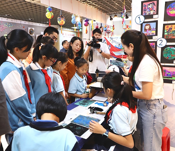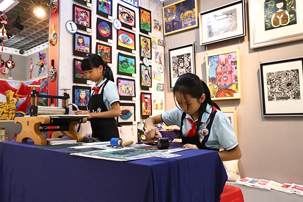 2019年10月30日上午,“美”譽沙溪,獻禮祖國——沙溪鎮2019年中小學幼兒園師生美術作品展在鎮文化展覽館進行開幕。濠涌小學為了展示版印的魅力,通過現場制作體驗和現場送畫等方式引來了不少觀賞者。