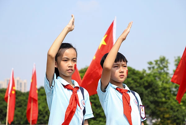 9月30日上午,迎著金秋的暖陽,沙溪濠涌小學師生齊聚國旗下,舉行了“禮贊新中國·奮進新時代”的升旗儀式,慶祝中華人民共和國成立70周年,為祖國獻上最誠摯的祝福。