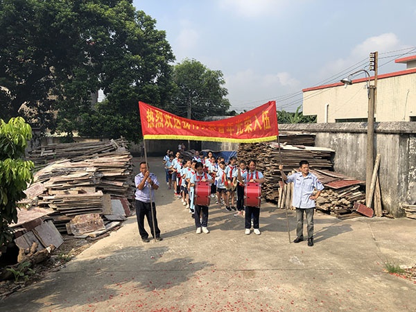 9月9日上午,沙溪鎮濠涌村內鼓號響亮,上午八點半,濠涌小學鼓號隊的隊員們穿著整齊的服裝,佩戴著鮮艷的紅領巾,在大隊輔導員陳慧超老師的帶領下,踩著整齊的步伐參與了濠涌村歡送新兵工作。