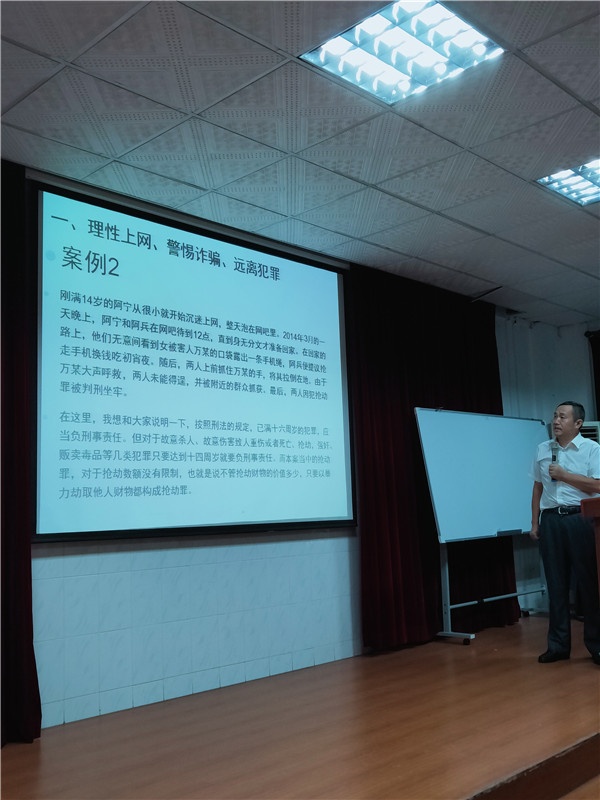 首先,陳從虎律師告誡孩子們要“理性上網(wǎng),警惕詐騙,遠(yuǎn)離犯罪”。陳律師通過一個個鮮活的案例,讓孩子明白了:不能沉迷于網(wǎng)絡(luò),更不能以身試法,上網(wǎng)要理性,要正確的利用互聯(lián)網(wǎng),如果上網(wǎng)沉迷于游戲,必將會毀了自己的人生前途!
