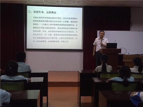 陳律師還嚴(yán)厲地告誡同學(xué)們說:“可能會有的同學(xué)覺得毒品離自己很遠(yuǎn),但在這里我要跟大家說的是毒品問題已成為全社會的一大毒瘤,毒品的危害很大,一方面對人的中樞神經(jīng)有很強的刺激作用,長期使用會導(dǎo)致大腦機能損壞,吸食者常因發(fā)生精神分裂癥而自殘、自殺,有些毒品在吸食后還會出現(xiàn)幻覺,引發(fā)攻擊行為。另一方面,吸毒者對毒品有很強的依賴性,為了獲取毒品往往會不擇手段,從而引發(fā)其他犯罪。所以一旦沾染毒品,必將禍害全家,自毀人生。”