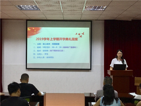 最后由分管德育的蔣莉副校長就德育工作進行系統安排,首先提出本學期德育工作重點和常態管理中的側重點;然后安排開學第一天的工作:如班主任到校后督促值日生搞好清潔衛生,檢查學生到校情況,同時及時聯系沒有到校的學生家長;接著第一節為班務課,各班主任收齊賽假作業,分發新書,對學生進行安全思想教育,期間安排學生觀看《安全第一課》;下午第二節全校大清潔,副班主任協助班主任管理學生搞好清潔,要特別注意學生的安全問題。