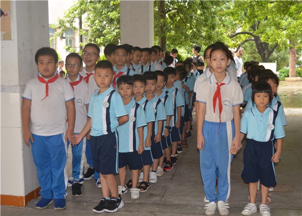 上午,開學典禮正式開始。二至五年級的學生像往常一樣,在激昂的運動員進行曲中,邁著堅定、整齊的步伐,安靜地入場等待;緊接著一年級新生在六年級大哥哥、大姐姐牽引下,滿懷好奇地步入操場。