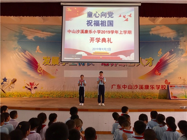 ——中山沙溪康樂小學舉行2019學年第一學期開學典禮發(fā)布時間:2019-09-02 16:58 信息來源:本網站 瀏覽次數(shù):109