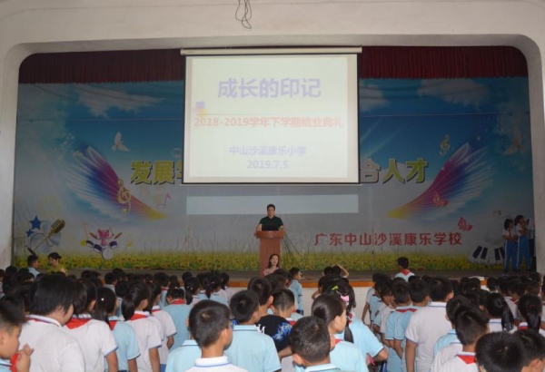 學(xué)校以學(xué)生成長為支撐,學(xué)生則用成功來印證,一個個分?jǐn)?shù)和一張張獎狀就是學(xué)生成長過程中留下的一個個足印,這一串串足跡是否會變成一個個美妙的音符,激勵師生向更理性方向發(fā)展。2018年度第二學(xué)期的學(xué)習(xí)生活結(jié)束了,在這個學(xué)期中,對于沙溪鎮(zhèn)康樂小學(xué)的全體師生來說不一樣,不一樣的開始,不一樣的學(xué)習(xí),更有一份不一樣的收獲。2019年7月5日下午,康樂小學(xué)全體師生在莊嚴(yán)的國歌聲中開始了隆重的2018~2019學(xué)年度第二學(xué)期結(jié)業(yè)典禮。