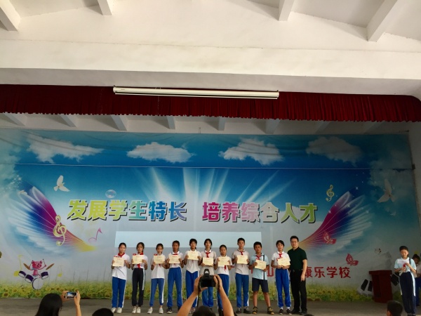 大會第二項活動是進(jìn)行頒獎。學(xué)校對那些在本學(xué)期中獲得各類比賽大獎的個人和集體頒發(fā)證書和獎品,頒獎嘉賓由輔導(dǎo)老師擔(dān)任,共同分享這一快樂時刻。