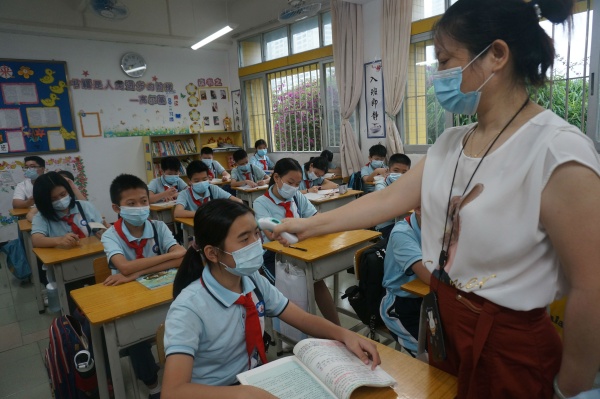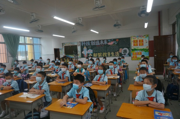 同學(xué)們?cè)谥等绽蠋煹囊龑?dǎo)下,秩序井然地進(jìn)入校園。人臉識(shí)別、測(cè)溫、洗手,經(jīng)過(guò)層層安全的流程,同學(xué)們回到了昔日溫馨的教室,開(kāi)啟新學(xué)期第一天的學(xué)習(xí)生活。經(jīng)過(guò)這次疫情的考驗(yàn),同學(xué)們成長(zhǎng)了,有的同學(xué)早早來(lái)到教室就主動(dòng)幫忙打掃衛(wèi)生、整理書(shū)桌;有的同學(xué)一坐下來(lái)就拿出書(shū)本進(jìn)行晨讀,有的同學(xué)牢記防護(hù)知識(shí),保持一米距離。老師們?nèi)橥度氲刂v解,學(xué)生們聚精會(huì)神聆聽(tīng)。午餐前,同學(xué)們保持1米的距離排隊(duì)洗手、領(lǐng)餐,安靜入座。老師們化身“保姆”,陪同孩子進(jìn)餐及午休,并進(jìn)行午檢。每一個(gè)細(xì)節(jié)都彰顯出學(xué)校對(duì)防疫防控工作的一絲不茍和對(duì)生命安全的無(wú)比重視。放學(xué)時(shí)間一到,孩子們?cè)诶蠋煹慕M織下有序列隊(duì),保持間距,平安離校。之后,老師對(duì)教室、走廊進(jìn)行打掃:消毒,擦拭桌椅、窗臺(tái)、門(mén)把手,清理垃圾,化身孩子們的“安全衛(wèi)士”,用愛(ài)心、細(xì)心給孩子們最好的安全保障。同學(xué)們?cè)邙B(niǎo)語(yǔ)花香的校園里盡情地朗讀,學(xué)習(xí),開(kāi)展課間活動(dòng),口罩下是一張張幸福的笑臉,口罩外是一雙雙渴望知識(shí)的眼睛,他們樂(lè)在其中,很快就適應(yīng)了學(xué)校的學(xué)習(xí)生活。