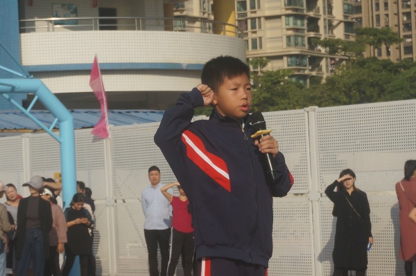 入場儀式結束,主持人介紹出席運動會的領導和嘉賓。莊嚴的升旗儀式后,黃金奇校長致開幕詞,他首先代表學校對運動會的勝利召開表示熱烈的祝賀,希望在本屆校運會上同學們能夠團結合作,發揚“敢于拼搏,超越自我”的精神,展示出虎遜學子努力拼搏、勇攀高峰的精神風貌,并祝愿本次運動會圓滿成功。運動員代表宣誓完畢后,肖程峻老師代表裁判員宣誓,表示堅決尊重、遵守本屆運動會的各項規則,堅持公平公正公開的原則,努力爭取運動成績和體育道德雙豐收。最后,黃金奇校長鄭重宣布虎遜小學2019年體育嘉年華——田徑運動會正式開始!雷鳴般的掌聲響起,為期一天半的運動盛會正式開始!