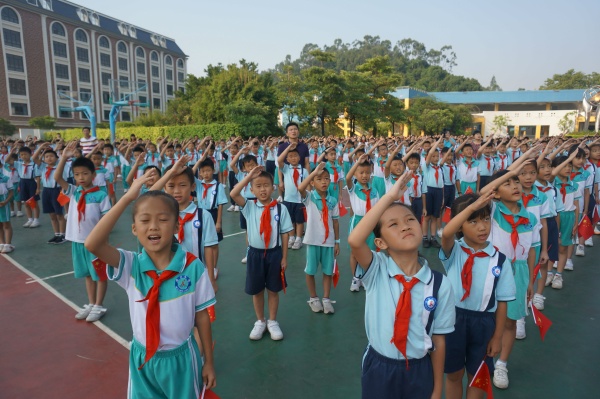 2019年9月30清晨,深情的歌聲在虎遜小學回蕩。值此新中國成立70周年之際,為進一步加強學生的愛國主義教育,增強學生的愛國情感,中山市沙溪鎮虎遜小學慶祝中華人民共和國成立70周年系列活動之“禮贊新中國 奮進新時代”國慶活動在學校中心廣場激情上演。