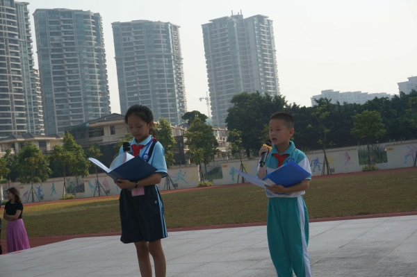 活動最后,在主持人帶領下,全體師生共同呼號:“祖國萬歲!”高昂的聲音傳遞著師生們最真摯的愛國熱情,現場響起了經久不息的掌聲和歡呼聲。接著陳晶晶同學和鄒亞辰同學給同學們帶來詩朗誦《仰望國旗》。