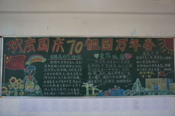 這次“喜迎中華人民共和國成立70周年黑板報”評比活動,不僅提高了各班級的班級凝聚力,同時又是一次深刻的愛國主義教育,促進了學校的文化建設。通過黑板報這塊無聲的宣傳陣地,讓虎遜每位學子都能感受到祖國70周年的喜慶,使同學們深刻地認識到現在的幸福生活來之不易,學會更加熱愛自己的祖國,好好學習,將來為祖國做出自己的貢獻。