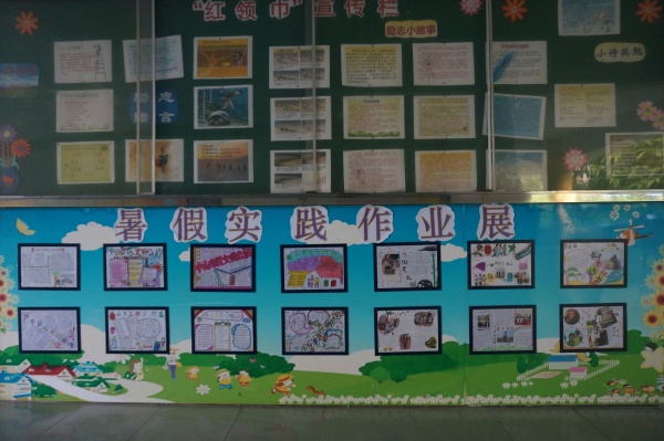 經(jīng)過嚴(yán)格的篩選,各班選出優(yōu)秀暑假作業(yè),并把優(yōu)秀的暑假作業(yè)張貼在二樓走廊進(jìn)行展出。