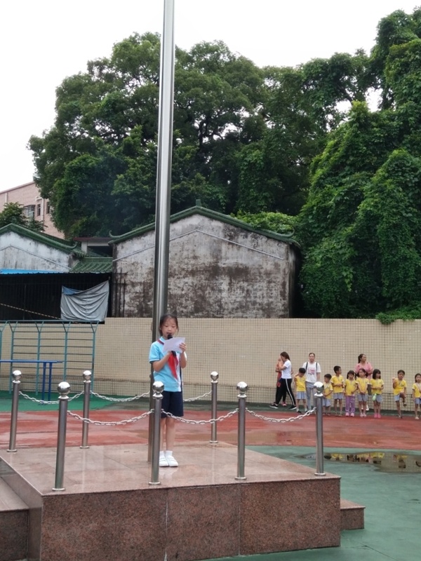 在雄壯的國歌聲中,全體師生仰望著鮮艷的五星紅旗冉冉升起。五(2)班學(xué)生代表黃嘉靜同學(xué)進行了國旗下講話。首先,黃同學(xué)介紹了端午節(jié)是我國古老的傳統(tǒng)節(jié)日,有著悠久的歷史文化背景。接著,她講述古時楚國人因舍不得賢臣屈原投江死去,紛紛劃船追趕打撈。之后每年的農(nóng)歷五月五日都會以劃龍舟的方式來紀(jì)念愛國詩人屈原,表達人們對屈原同情和崇敬之情,賦予了端午節(jié)濃濃的愛國情愫和民族情結(jié)。最后,她還提醒同學(xué)們屈原因為熱愛祖國、關(guān)心百姓疾苦而受到人們的愛戴,當(dāng)我們津津有味地吃棕子、觀看賽龍舟時,不要忘記2000多年前那位愛國大詩人—屈原。