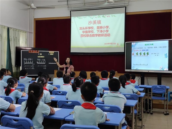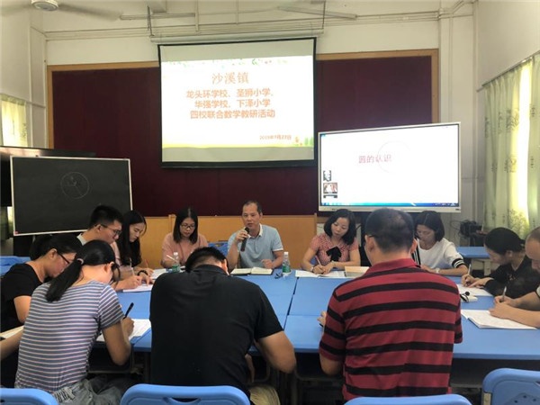 為了提高數(shù)學(xué)教學(xué)質(zhì)量,了解各學(xué)校的教學(xué)手段與方法,促進(jìn)學(xué)校之間教師們的學(xué)習(xí)交流。2019年9月27日,中山市沙溪鎮(zhèn)龍頭環(huán)學(xué)校、圣獅小學(xué)、華強(qiáng)學(xué)校以及下澤小學(xué)四校聯(lián)合在龍頭環(huán)學(xué)校電教室開(kāi)展了數(shù)學(xué)教研活動(dòng)。本次活動(dòng)主要包括:龍頭環(huán)學(xué)校的黃淑娟老師執(zhí)教《植樹(shù)問(wèn)題》和龍頭環(huán)學(xué)校的鄭君時(shí)老師執(zhí)教《圓的認(rèn)識(shí)》兩節(jié)分享課、四校關(guān)于數(shù)學(xué)教學(xué)問(wèn)題進(jìn)行研討。