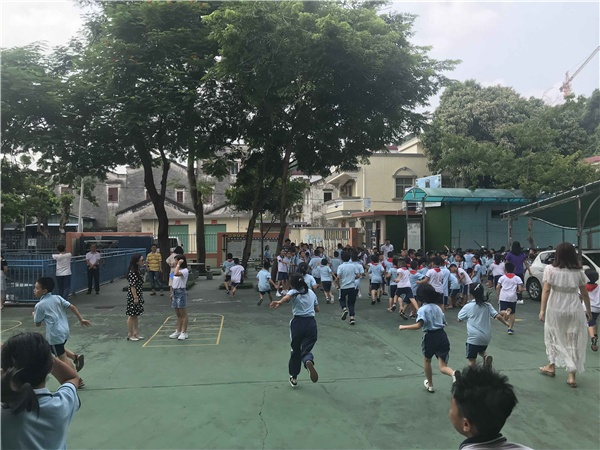 10點整,隨著校園內響起警報廣播,一聲長笛的警報聲響起,各位老師立即到達指定崗位,引導樓內學生快速疏散,各班任課教師帶領學生彎著腰、用手帕等捂住口鼻手搭在頭頂,沿著學校指定樓梯口逃生路線快速前進,有序撤離到學校操場的安全地帶,隨即各任課教師清點人數(shù),并層層向上級匯報,整個過程平穩(wěn)有序。集合完畢后,主管安全工作的主任李家豪以及校長吳發(fā)志對演練情況做出了總結,提出在火災逃生時應注意的地方,確保做到快速安全撤離。接著李主任對馬上就要到來的傳統(tǒng)佳節(jié)——中秋節(jié)進行了食品安全教育和過節(jié)期間注意防火安全,強調必須做到安全文明過節(jié),不燃放煙花爆竹,不暴飲暴食健康快樂的過一個有意義的中秋節(jié)。