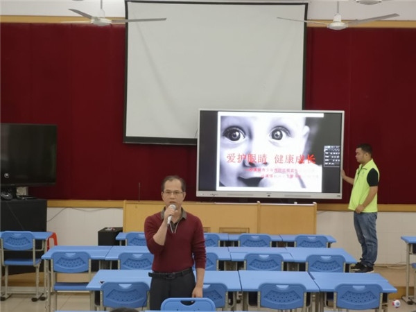 活動在井然有序中拉開序幕。徐大寬醫(yī)生以學(xué)生日常生活中的具體用眼事例,形象生動地對學(xué)生講解各種愛眼知識,如:不要長時間近距離看電視、不要在移動的環(huán)境下看書、不要在強光和較暗處看書、少玩電腦、手機、游戲、保證充足的睡眠、合理的飲食和適當(dāng)?shù)腻憻挼龋逃龑W(xué)生從小養(yǎng)成良好的用眼習(xí)慣。同時,護眼也不容忽視,他提出:幼兒不玩危險性玩具,如:鋒利的小刀、帶子彈的手槍、尖的鉛筆尖、尖銳的剪刀等,以免玩時不小心劃傷眼睛。