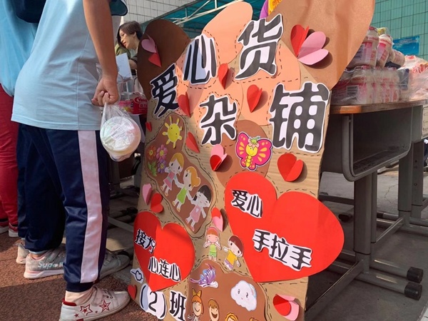 同學(xué)們對愛心義賣期盼已久了,天氣雖然炎熱,但同學(xué)們的熱情更高,在學(xué)校的球場上,每個(gè)班級的“店鋪”都布置的引人注目,三(2)班的“愛心淘淘屋”、一(1)班的“一善一美親子園”、五(2)班的“心連心小店”、五(1)班的“雜貨鋪”......每個(gè)攤位前各種叫賣用的舉牌道具一應(yīng)俱全,吸引顧客的形式多樣:親子釣魚、幸運(yùn)轉(zhuǎn)轉(zhuǎn)轉(zhuǎn)、幸運(yùn)套圈、刮刮樂等,秩序井然,有條不紊。攤位上的商品也是琳瑯滿目,這些商品是同學(xué)們捐贈(zèng)出來的書籍、學(xué)習(xí)用品、兒童玩具、手工藝品、零食、水果;還有家長們親手做的點(diǎn)心、蛋糕、腸仔魚蛋,自制的八寶粥、豆?jié){、糖水等等?;顒?dòng)中,他們個(gè)個(gè)熱情高漲,現(xiàn)場叫賣聲連綿不斷,熱鬧非凡。孩子們喊:“快來看一看吧,獻(xiàn)出你的愛心吧!”、“走過路過不要錯(cuò)過啊,便宜賣便宜賣了!”每個(gè)攤位都圍滿了同學(xué),各自挑選著自己喜歡的物品。操場上的吆喝聲、家長孩子選購的討論聲、淘到喜歡東西的歡笑聲絡(luò)繹不絕,現(xiàn)場氣氛十分熱烈……感人的話語時(shí)時(shí)響起,感人的情景幕幕呈現(xiàn)。同學(xué)們不僅能夠用自己的零花錢,自己的捐贈(zèng)物品幫助他人,更能用實(shí)際行動(dòng)幫助身邊需要幫助的人。善的種子,已然在圣獅小學(xué)每一個(gè)同學(xué)們的心中生根、發(fā)芽,終將結(jié)成愛的果實(shí)。