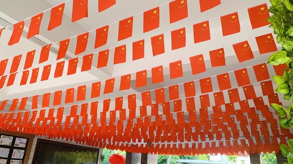 一進入校園圣獅小學變成紅色的海洋。高高掛起的燈籠,隨風飄揚的國旗,營造出喜迎國慶的良好氛圍,孩子們在一片喜慶的環境熏陶下,拼發出愛國之情和民族自豪感。