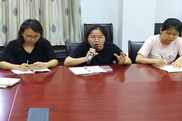 活動中,語文科組率先為大家進行了科組教研展示,對王艷榮老師執教的《詠柳》進行評課議課。王艷榮老師首先進行了細致的說課與反思,然后主評老師陳向紅、李娟,以及其他語文教師先后從不同方面、角度給予了細致地評議。其間,古詩吟誦、情境教學的運用引起了大家精彩的思想碰撞。