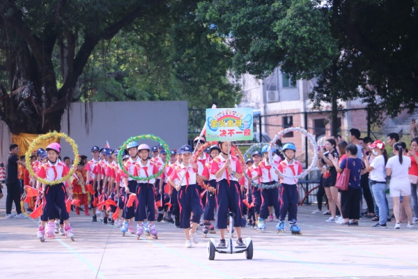 10月12日,象角小學(xué)迎來了一年一度的田徑運(yùn)動(dòng)會(huì)。在開幕式即將開始時(shí),校園突發(fā)停電,在該校校長(zhǎng)楊振環(huán)的指揮下,各位老師積極配合,努力克服困難,在學(xué)校音箱系統(tǒng)不能使用的情況下,按預(yù)備方案順利地進(jìn)行開幕式的進(jìn)場(chǎng)。伴隨著激昂的運(yùn)動(dòng)員進(jìn)行曲,各班方陣喊著激情、嘹亮的口號(hào),踏著整齊的步伐經(jīng)過主席臺(tái),接受檢閱。各班的展示、表演更是將氣氛推向了高潮,迎來了在場(chǎng)觀眾陣陣掌聲。在升旗儀式結(jié)束后,運(yùn)動(dòng)會(huì)在楊校長(zhǎng)熱情洋溢的講話中拉開了帷幕。