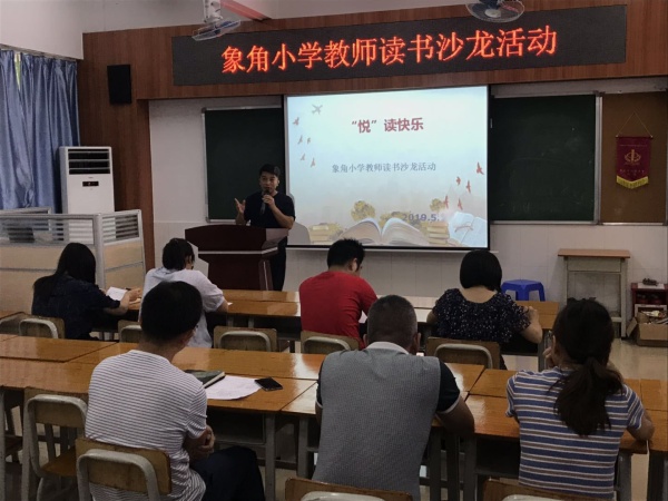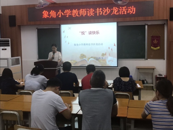 讀一本好書,等于和一個高尚的人在談話。在“悅讀快樂”全民讀書月活動中,為營造濃郁的讀書氛圍,以讀書促進教師專業成長,進一步推進學校書香校園建設,象角小學于5月30日下午舉行了“悅讀快樂”教師讀書沙龍活動。活動要求全體教師閱讀相關書籍,寫好心得體會,現場抽簽確定發言人,并設最佳發言獎、最佳氣質獎、最佳臺風獎。