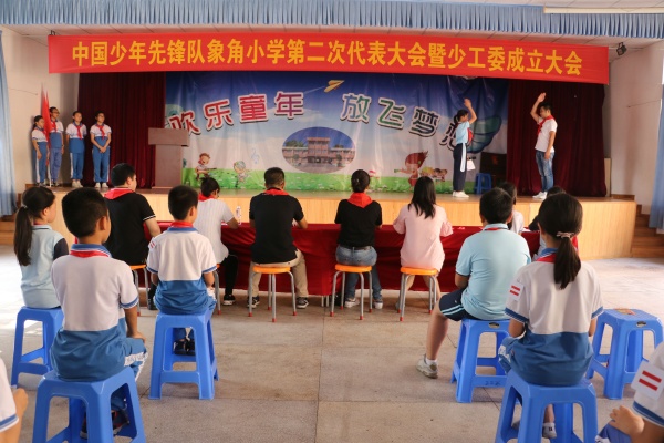 5月13日下午,中國少年先鋒隊象角小學大隊第二次代表大會暨少工委成立大會在該校禮堂召開。沙溪鎮少工委總輔導員阮秀迎、象角小學黨支部書記楊振環、家長代表鄭紹畢、全體中隊輔導員及少先隊員代表等共72人參加了會議。