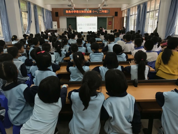 為進一步推進書香校園建設,更好地促進語文教學,檢查學生的語文基礎知識,提高學生語文素養水平,激發學生課外閱讀興趣,培養學生愛讀書讀好書的習慣。4月1號下午,象角小學舉行了“一、二年級語文知識競賽”專場活動。