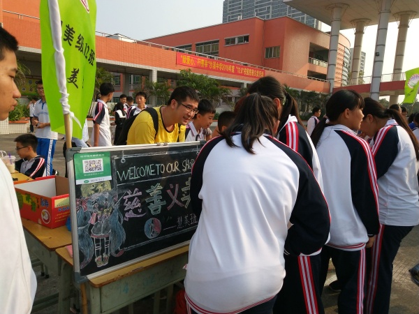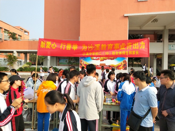 愛心義賣、文藝匯演、籃球義賽、慈善捐款……,恰逢今年是沙溪12.8慈善活動30周年,作為該項沙溪傳統慈善活動的最大受益者之一,沙溪中學一如既往傾情投入,組織開展系列活動。在11月期間,沙溪中學先后開展動員、義賣、義演等多項活動籌款。作為系列活動的“重頭戲”,11月26日下午,沙溪中學全校師生和眾多家長一道,齊聚學校廣場開展愛心大義賣,大家一起出錢出力,為沙溪慈善事業奉獻光和熱。