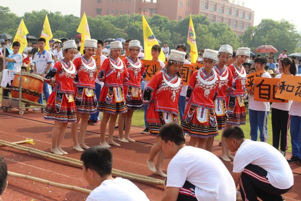 隨后進行各班入場儀式暨班級文化展示,各班全班學生參與以整齊的隊伍,飽滿的精神響亮的口號響亮展示班級精神面貌。各班根據本班特點,設計出具有本班班級文化,班級特色、形式新穎的入場表演,以班級單位在入場儀式上進行展示。此外,本次體育節的主題是“愛我中華”,各班通過創意特色展示環節,表達了對祖國的熱愛及祝福。除了歷年的經典項目舞獅、跆拳道表演,今年更多的是傳統文化的展示,比如古箏、竹笛演奏,中國舞、民族舞表演,武術、舞旗展示,中國風歌曲演唱等。更值得一提的是,今年很多班級結合“愛我中華”主題進行表演,如再現長征場景的短劇,舞劇《紅星閃閃》,朗誦《少年強》,手語表演《國家》、中國舞和街舞結合展示年代變化、時代進步的《大中國》等,充分表現沙中師生熱烈的愛國之情。