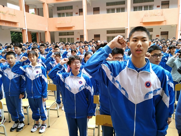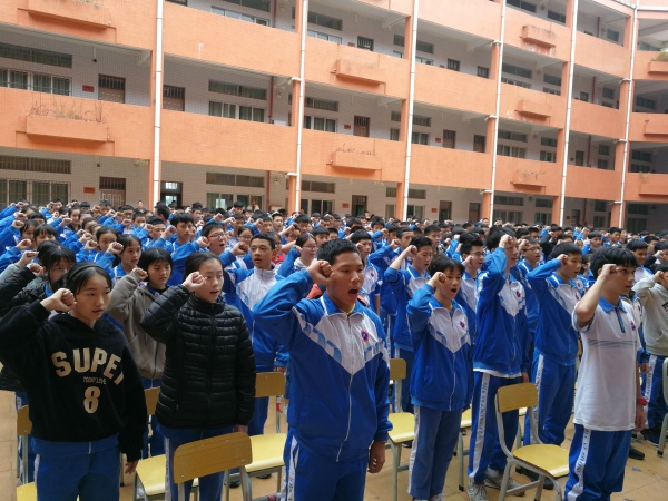 聽完領導和老師的講話,同學們個個精神振奮、倍受鼓舞。在陳曉潼、楊栩兩位同學的帶領下,大家進行了激情澎湃的宣誓,字字鏗鏘,響徹校園。