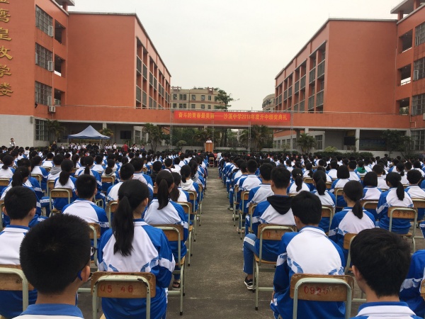 青春,像是初生的紅日,光芒萬丈。青春,人一生中最美麗的年華。為了表彰2018屆中考優秀畢業生,同時激勵2019屆初三學生全力以赴備戰中考,2019年3月15日下午,沙溪中學全體師生及2018屆優秀畢業生集中在鶴鳴廣場,舉行了以“奮斗的青春最美麗”為主題的升中頒獎典禮。沙溪鎮關工委委員、沙溪中學退休校長李興廉、校友會會長、常務副會長及校友代表們參加了本次典禮。