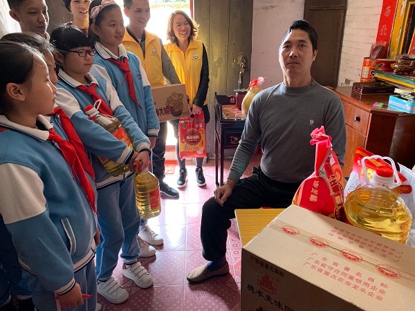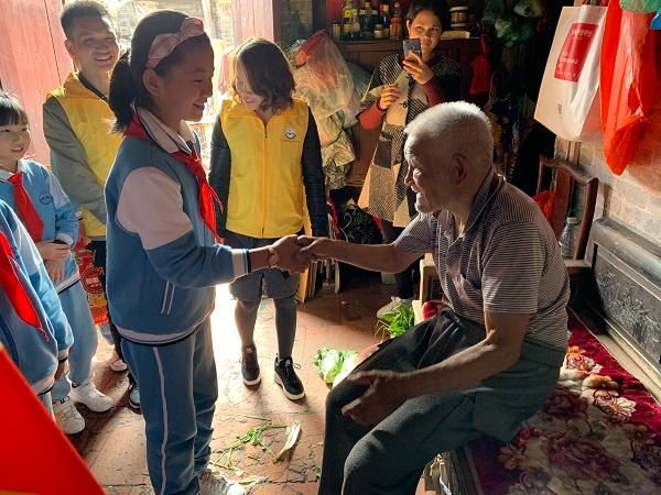 在慰問活動中,師生和志愿者們為老人送上了大米、花生油、長壽面等,還給老人家做清潔,收拾堆放的雜物,擦窗,之后大家陪老人家聊天,聽老人回憶過往的日子,有說有笑,其樂融融,仿佛一家人一樣。老人的家里充滿歡快的笑聲。老人對隊員們也是贊不絕口,心懷感激,大家一起度過了快樂而又溫馨的一天。最后,隊員們還給老人家送上了自己誠摯的祝福和深深的擁抱,使老人家感受到了親人般的溫暖。