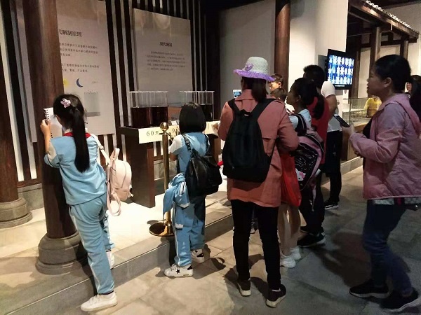首站前往參觀廚邦醬油博物館。孩子們排著整齊的隊(duì)伍參觀了一樓的售賣柜臺、二樓的百醬園、三樓的工藝器具展廳。不同的雕塑還原出制作、售賣的場景,犁、耙、簸箕、風(fēng)斗、灶臺、抽油桶等,讓孩子們在欣賞完古香古色的器具中了解到醬油工藝的源遠(yuǎn)流長。接著觀看了廚邦醬油文化科教宣傳片、看到了在實(shí)驗(yàn)室認(rèn)真工作研究員和大片的曬場。來到醬油生產(chǎn)線,偌大的生產(chǎn)區(qū)只有也只有三五個工作人員,了解到從洗瓶、裝瓶、檢驗(yàn)、包裝,短短的幾分鐘時(shí)間一瓶瓶醬油就生產(chǎn)出來了。孩子們感嘆科技的力量。