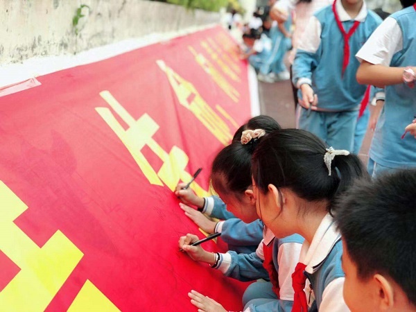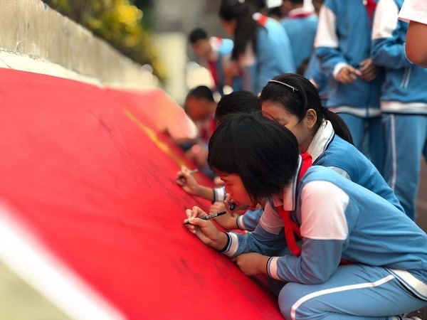 隨后,校長帶頭,老師們和各班同學紛紛上前在“珍惜生命,向毒品再SAY NO”的橫幅上慎重地簽下了自己的名字,表達了不為毒魔誘惑,好好學習,珍惜生命,拒絕毒品的決心。