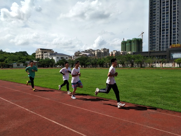 運(yùn)動(dòng)場上正在進(jìn)行的是男子1000米測試,吶喊聲此成彼伏,第一圈同學(xué)們還顯得較輕松,第二圈時(shí)同學(xué)們的腳步就慢了些,到第三圈的時(shí)候有的同學(xué)已經(jīng)落下了一段距離,臉也漲得通紅,汗流浹背,但周圍的同學(xué)在大聲喊著“加油!加油!”,給他們鼓勁,有的在陪跑沖刺。在這個(gè)運(yùn)動(dòng)場上,我們既能看到同學(xué)們的堅(jiān)持與努力,也能看到友誼與真誠。