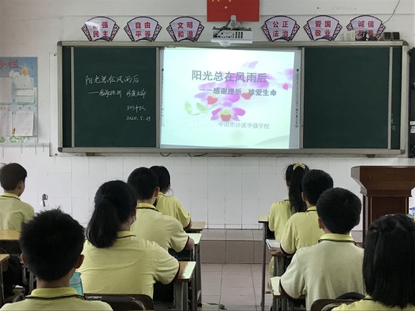 5月25日,星期一的第一節(jié)課是全校的主題班會(huì)課,各班級(jí)在學(xué)校德育處的統(tǒng)一安排下,召開(kāi)抗挫折主題班會(huì)——《陽(yáng)光總在風(fēng)雨后》。